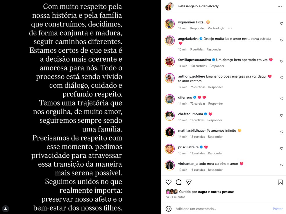| Ivete Sangalo e Daniel Cady anunciam separação — Foto: Reprodução/Redes Sociais |